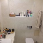 - При отделке ванной комнаты искусственным мрамором не стоит перегружать её ненужными аксессуарам, чтобы зрительно не загромождать пространство.