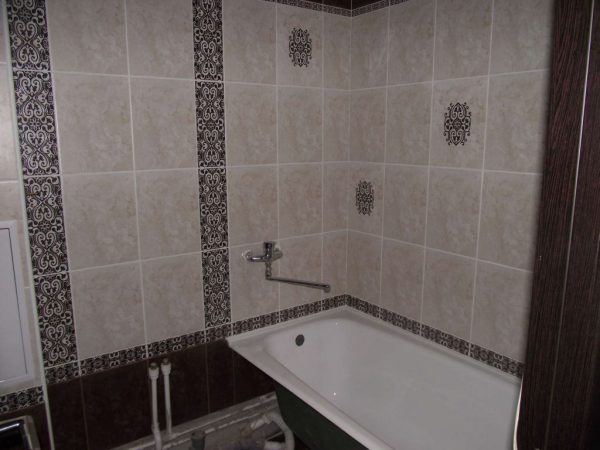Важно! Способ укладки влияет на визуальное восприятие помещения. Если отделка ванны плиткой рядным методом привлекает внимание к малейшим неровностям стен, то технология приклеивания кафеля со смещением, наоборот, скрадывает дефекты облицовки.