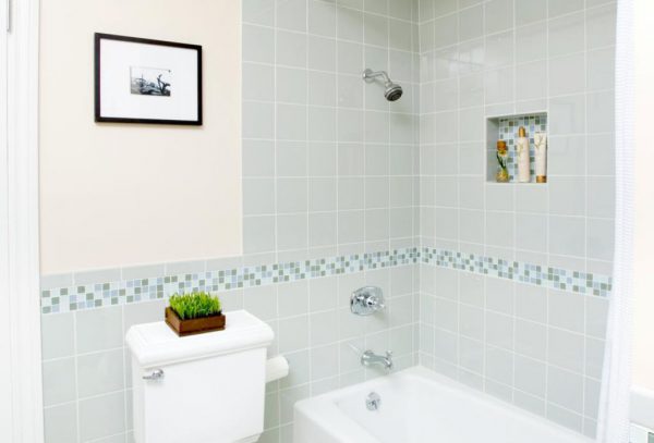 Облицовка ванной кафелем – традиционный вариант отделки стен, пола или даже потолка помещений с повышенной влажностью, в которых материалам трудно избежать прямого контакта с водой. Керамическая плитка прекрасно выдерживает воздействие влаги, агрессивной бытовой химии, используемой для дезинфекции санузла, повышенной температуры и пара, поэтому срок ее службы превышает 25 лет. Однако, однотонная плитка смотрелась бы скучно и однообразно, если бы ее просто укладывали рядами. Для украшения и визуального изменения восприятия пространства выполняется декорирование помещения с помощью следующих элементов: