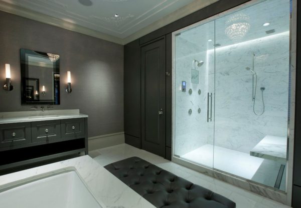 Когда площадь превышает 8 кв. м., можно позволить кабину любого размера. В случае необходимости полного комплекта функций устанавливается полноценный бокс. Это удобно, если человек ведет здоровый образ жизни, любит посещать сауну и использует гидромассаж.