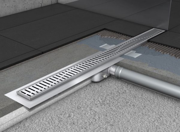 Точечный трап - Линейный. Линейным называют трап, имеющий форму узкого, вытянутого в линию прямоугольника. Он имеет больший размер, чем точечный, поэтому способен собирать и пропускать через себя больший объем воды в единицу времени. Трапы линейного типа обычно располагают в углах ванной комнаты или по ее периметру.