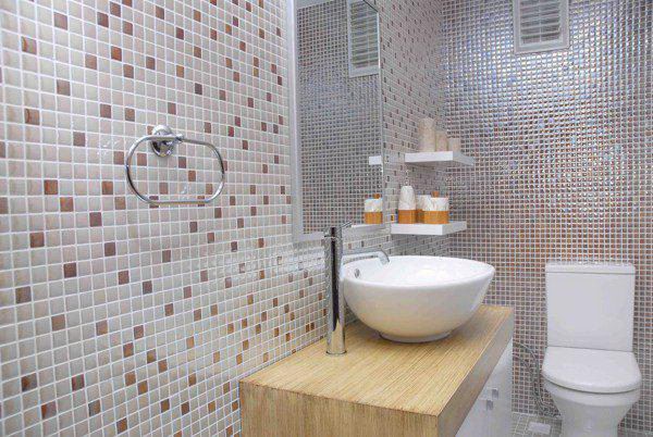 - Размер плиток. Кафель большого размера делает тесные помещения визуально меньше, поэтому его рекомендуют для просторной комнаты. Кафель, состоящий из мелких элементов подходит для малогабаритных ванных;