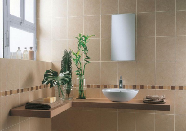 Некоторые производители предлагают кафель имитирующий цвет и структуру натуральных материалов, к примеру, плитка под дерево отлично смотрится на полу ванной комнаты.