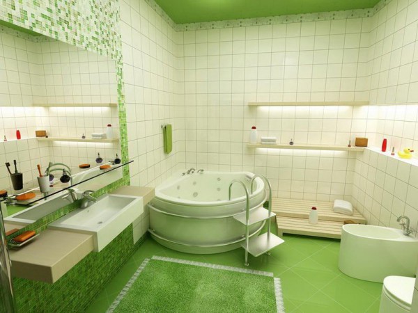 - В малогабаритных помещениях лучше отдавать предпочтение светлым оттенкам – бежевому, зеленому, голубому. В просторной ванне допустимо использование насыщенных цветов – коричневого, фиолетового, оранжевого;