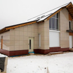 Керамогранит для фасада – это пожаро-, морозо- и атмосферостойкий материал, который со временем не выцветает. Толщина плит может быть от 8 до 12 мм. Самые популярные размеры – 600х600 мм и 600х300 мм. В отличие от укладки на пол или стены, фасадный керамогранит крепится без клея, на каркас. Такая технология называется вентилируемым фасадом. Она долговечна (до 50 лет), может быть монтирована в любое время года и позволяет установить внешнюю изоляцию стен.