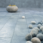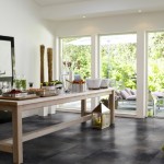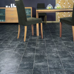 Ламинат под плитку с фактурой камня на кухне от Armstrong (коллекция Porto Alegre — Amber).