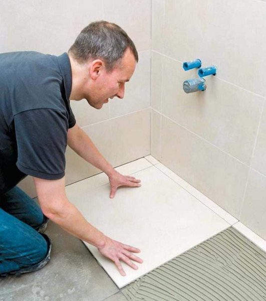 Обратите внимание! Если приклеить новую керамическую плитку на старое покрытие, уровень пола повысится на несколько сантиметров. В ванной комнате по обязательно должен быть на 2-3 сантиметра ниже уровня остальных помещений. На входе можно установить небольшой порожек, который предотвратит переливание воды при протечке в коридор.