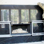 На следующий день клей застыл, и мы приступили к облицовке второй части камина. Тут используется белый мрамор, поэтому клей используем специальный – тоже белый. Облицовка каминов обычным серым клеем для белого мрамора недопустима (он потемнеет, вылезут пятна).