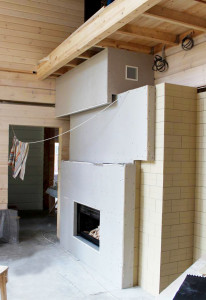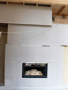 Вокруг камина уже был сделан гипсокартонный короб. Он подходил по размерам и был хорошо выставлен по уровню, поэтому задача упростилась.