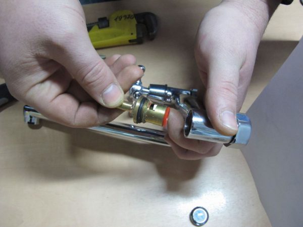 - В последнюю очередь нужно вынуть картридж или шаровой механизм, заменить его на новый, а затем осуществить сборку в обратном порядке.