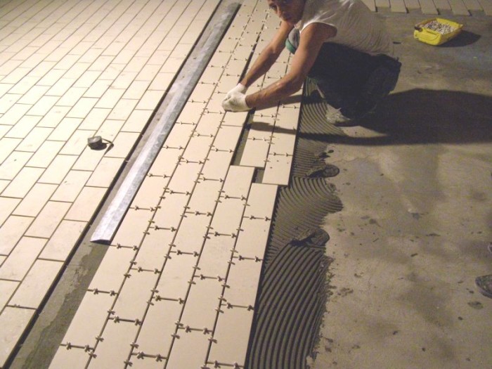 Схема укладки кислотоупорной плитки почти во всём идентична обычной. Отличия кроются в клеевых и затирочных составах. Само собой, стойкой к внешней агрессии должна быть не только керамика, но и связующие вещества. Последние должны обладать очень высокой кислотостойкостью (до 98%).