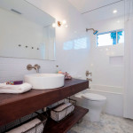 Плитка кабанчик делает интерьер ванной чистым, свежим и современным. Если взглянуть на варианты облицовки ванных комнат этой плиткой, то основная часть из них выполнена в светлых цветах (белый, бежевый) без лишних декоративных элементов.