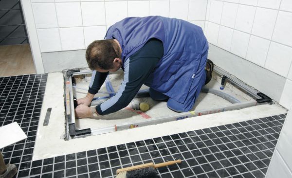 Если душевая кабина устанавливается на совершенно не подготовленном месте, то работы начинаются с установки тройника в канализационный сток с отводом на душ, причем уровень установки его должен быть ниже поверхности пола.