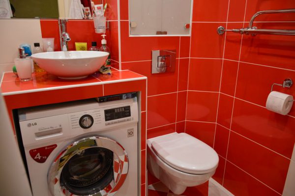 - Экономия свободного пространства. В некоторых квартирах полезная площадь санузла не превышает 3 квадратных метра, а ведь в этом пространстве нужно устанавливать не только ванну, но и унитаз с мойкой и бытовую технику. Стиральная машина под раковиной в ванной комнате не занимает много места, нов то же время ею удобно пользоваться.