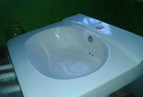 Керамическая раковина - Акрил. Для изготовления раковин с боковым сливом часто используется акрил. Это современный пластичный и легкий полимер, благодаря легкости обработки которого, изделию можно придать любую форму. Акриловая мойка более требовательна в уходе, ее нельзя чистить агрессивной бытовой химией и абразивными средствами.