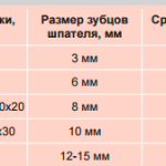Сводная таблица смесей по размерам плитки и основанию: